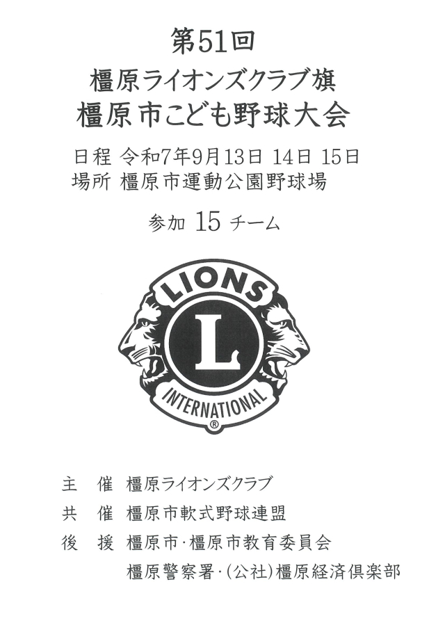 橿原ライオンズクラブ旗 第51回橿原市こども野球大会